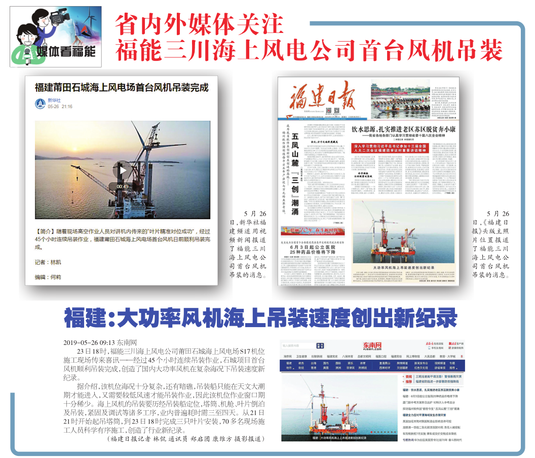 省内外媒体关注福能三川海上风电公司首台风机吊装
