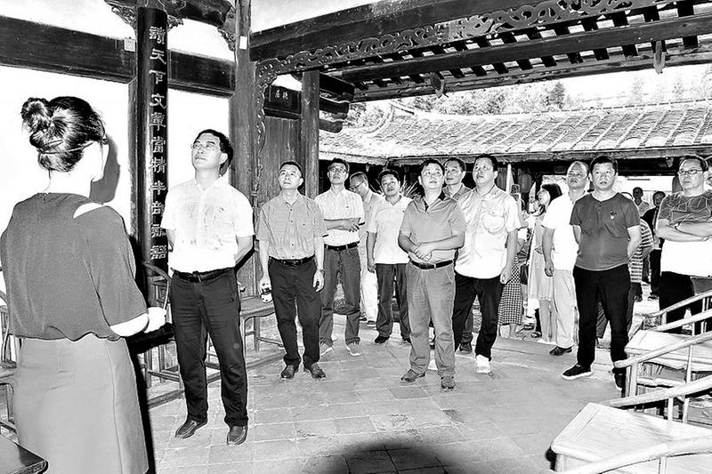 图为福维公司党员参观永安吉山抗战文化遗址。 “这些共产党人和爱国进步文化人士团结在统一战线下,不顾个人安危,办报纸、出刊物、建学校,开展了轰轰烈烈的进步文化活动,推动抗日救亡运动……”在永安吉山抗战文化遗址前,前来进行“红色”体验活动的福维公司党员干部,仔细聆听市文旅局解说员张雅璐的深情讲述。