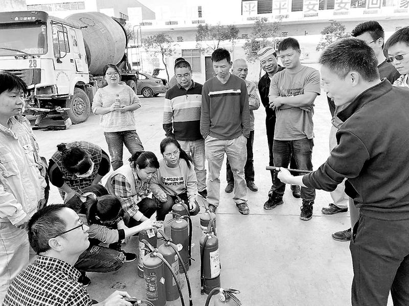 11月11日,建材控股龙岩混凝土公司开展消防安全知识培训及现场演练活动,图为培训员正在讲解灭火器的使用方法。(邱磊陈钧天摄影报道)