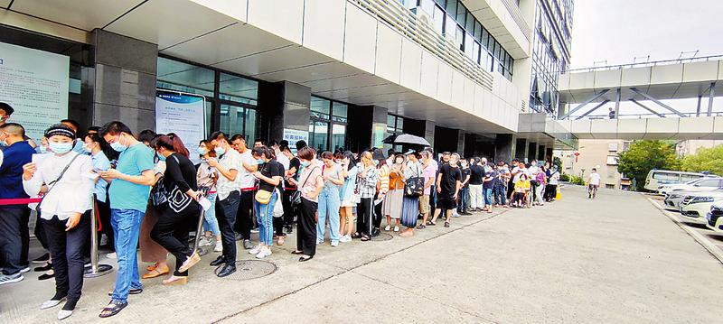 目前,福能总医院新冠病毒疫苗接种服务时间为上午8:00~11:30,下午2:30~5:00,为群众在家门口的医院进行疫苗接种提供了极大便利。图为群众在排队接种疫苗。(文/陈恩 图/林妮妮)