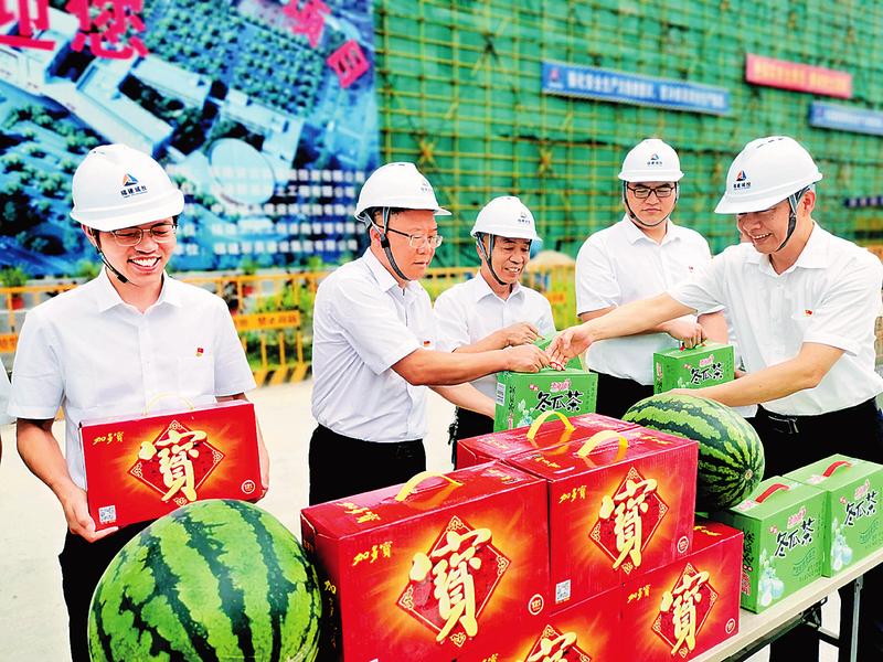 连日来,持续高温酷暑,烈日炎炎。为了确保高温期间广大职工的身心健康,营造安全、健康、和谐的生产生活环境,近日,城投公司开展“关爱职工、夏送清凉”活动,公司领导分头深入到PPP项目建设现场为一线职工送去西瓜、凉茶等防暑降温清凉食品,向高温下坚守岗位的职工表示诚挚的问候和关爱。(丘永贵摄影报道)