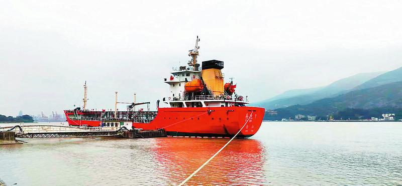 近日,一艘装载着3000吨燃料油的“易达7”号油轮成功靠泊,福州港燃油供应公司作业人员严格遵守安全操作规程,有条不紊地开展油轮接卸工作。在全体职工的共同努力下,当日顺利接卸燃料油入库2944.078吨,创历史同期新高。(刘圣晖 摄)