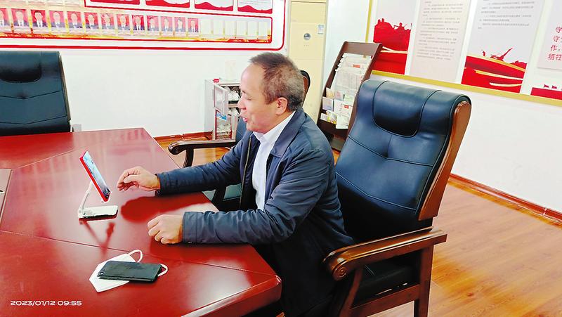 1月12日,邵武煤业公司党委书记、董事长徐汝华,党委副书记、总经理王忠献,党委委员、纪委书记张学尚通过视频连线的方式,云慰问”公司离退休干部和困难职工代表,为他们送上新年祝福并致以诚挚问候。据了解,今年春节,该公司慰问了特困户、二、三期矽肺病、遗属和伤残人员等900余人,共计发放慰问金200余万元。图为王忠献正在视频慰问省“五一劳动奖章”获得者王州明。(赵芯 摄)