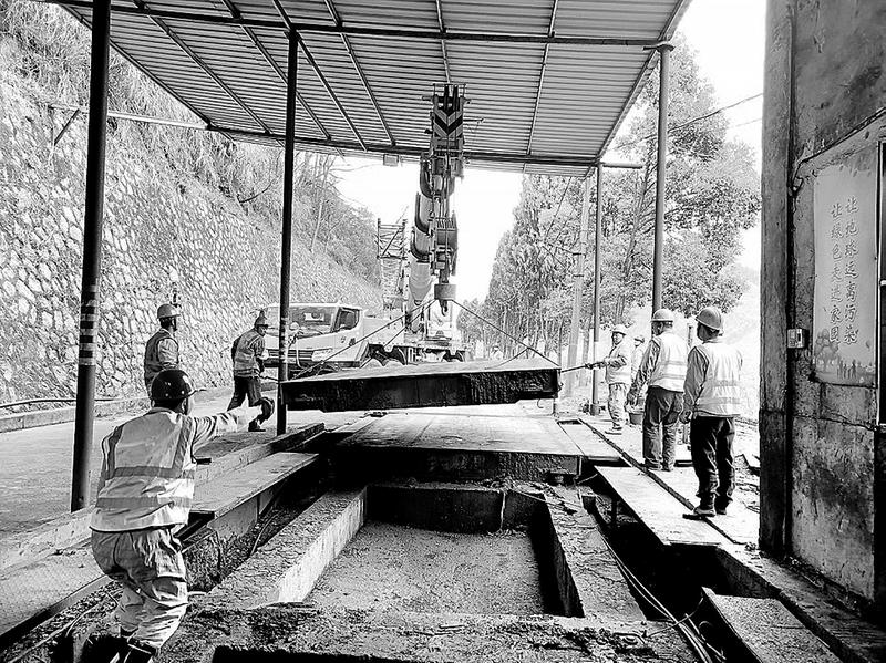 永安煤业公司西洋筛选厂吹响复工“集结号”,年度大检修全面开展。图为2月1日,在地磅检修现场,该厂员工密切配合,确保计量精准。(陈荣寿 摄)