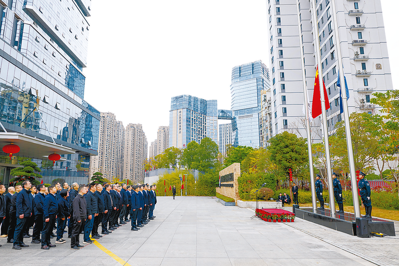 集团党委副书记、副董事长、总经理吴礼源主持升旗仪式,号召集团全体干部职工把对祖国的热爱、对事业的忠诚落实到每一个岗位,心往一处想、劲往一处使,以更扎实的作风推动发展破题,以更坚定的步伐打开发展新局,在高质量发展赛道上跑出“加速度”,用实绩交上满意答卷。