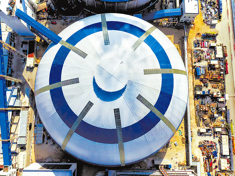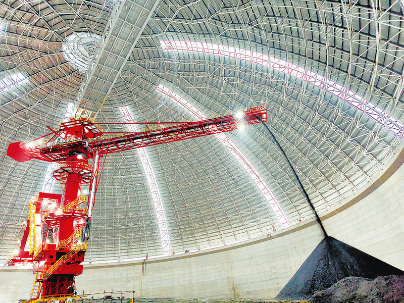 古雷石化基地热电联产南部二期项目2号圆形煤仓完成首次堆煤