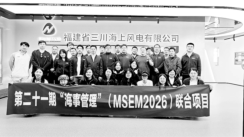 3月31日,大连海事大学37名师生组成的调研团到三川风电公司开展实地调研学习。此次调研聚焦海上风电产业发展前沿,旨在深化政校企合作,推动产学研融合,助力海上风电领域高素质人才培养与产业技术创新。 (林颖 摄)