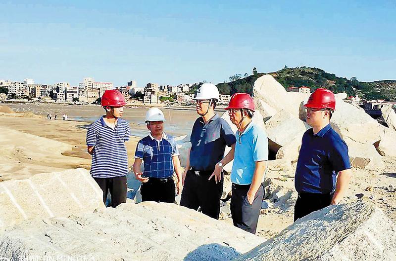 6月26日下午,省港航管理局林明标副局长(中)、湄洲湾港口管理局陈鸿朝副局长(右二)等领导到肖厝作业区5#、6#泊位项目调研督查。(徐纬国摄)
