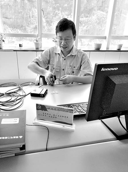 图为张定彪在维修网络接线。 阿彪是可门港物流公司同事们对这位网络管理人才的昵称。他并不是彪形大汉,他为人朴实、待人谦和,在故障面前却当仁不让,不解决问题不罢休的势头在同事们的心里是那么的高大伟岸。他总是默默无闻,走路都是轻盈的,像是不舍惊吓这些正在运行的系统。他总是不计较个人得失,不管是饭点还是下班时间,不管是周末还是法定假日,不管是领导还是普通员工,哪里有需要哪里就有他的身影。他就是我眼中的优秀共产党员张定彪。