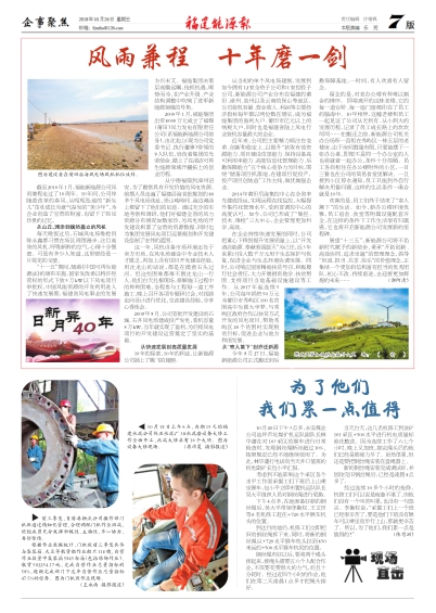 图为风景如画的永春外山风电场图为风景如画的永春外山风电场。。((杨庆新杨庆新摄摄)) 截至2018年1月,福能新能源公司风雨兼程走过了10周年。10年间,公司伴随着改革的春风,从呱呱坠地的“新生儿”茁壮成长为意气奋发的“美少年”,为企业创造了宝贵的财富,也留下了弥足珍贵的记忆。