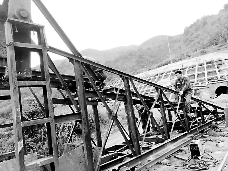 漳平煤业公司箭竹坪煤矿为了提高+283主平硐排矸率,减轻工人劳动强度,经主管部门协调,从原大瑶煤矿五号井调来翻矸架,并于10月23日组织机电人员加班加点进行安装、检修。(秦立栋摄影报道)