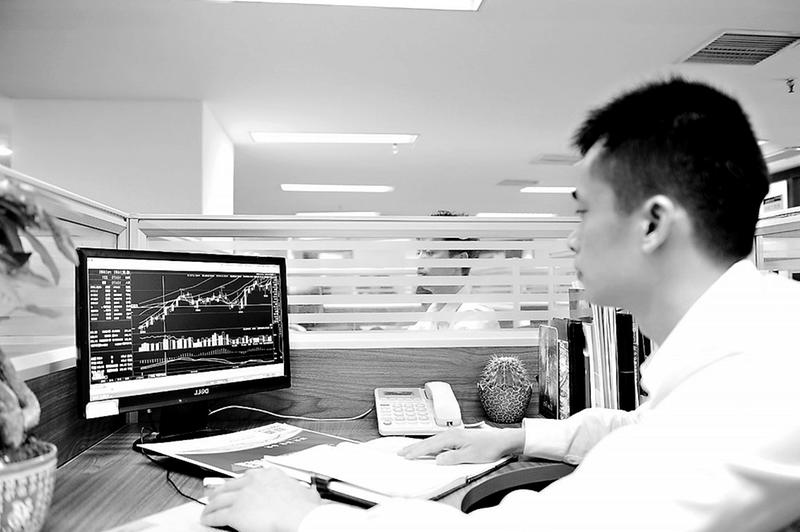 (黄婧珺/文张旭/图)图为市场开发人员正与涨跌停板的行情博弈着。