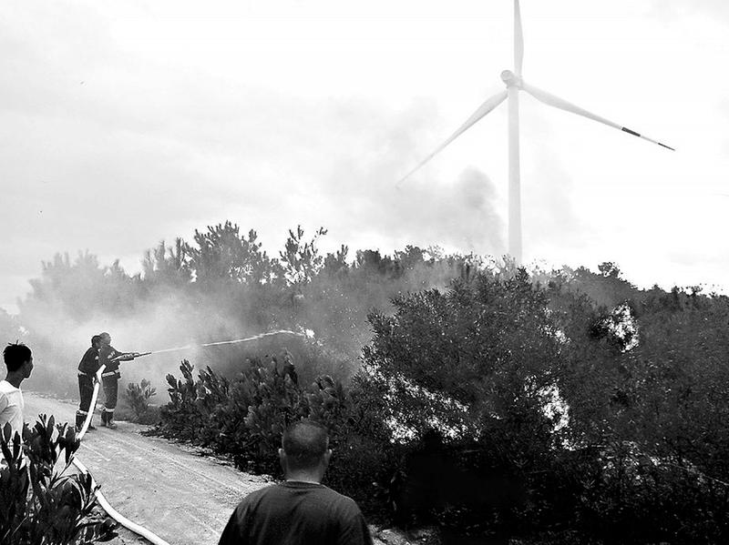 台风路径图显示登陆地可能位于漳州,隆教风电场负责人张栋仁丝毫不敢松懈,组织各岗位人员就位,落实好风电场及新村生活附属楼的各项防范措施。下午5点30分,他们发现44号风机周边的山林着火,张栋仁立即带领徐德水、吴炎鑫等6名员工赶到事发地点,和当地消防人员一同救火。明火扑灭后,由于风势很猛,有复燃的可能性,他们留在原地继续关注火情。果不其然,火苗借着风势很快又蹿成了大火,扑火工作一直持续到了晚上9点多。在确认安全后,他们才安心地离开。