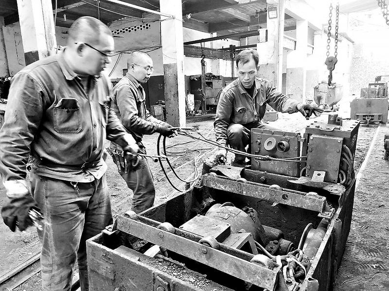 福建煤电公司翠屏山煤矿为确保年底安全生产,全力做好设备的检修工作,重点从缩短设备检修时间、强化维修效果上入手,确保故障设备能够及时恢复使用。图为12月10日,该矿维修人员正在检测一台刚抢修好的电瓶车。
