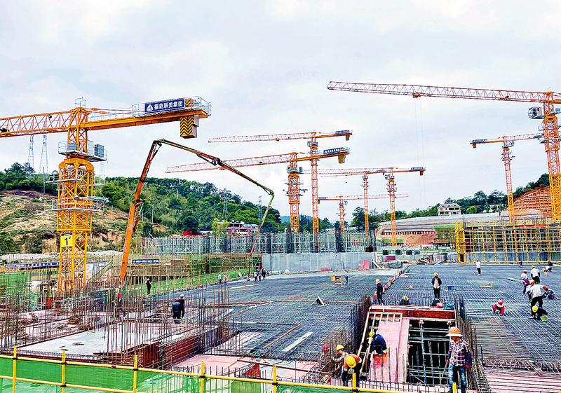 联美公司在取得一季度“开门红”后,持续加大项目推进,各项目工地一派红红火火的景象。工人们以饱满的热情和干劲忙碌在各自岗位上,开足马力生产。图为4月12日龙岩“美伦·锦山壹号”项目繁忙的施工场景。(建平辉宏摄)