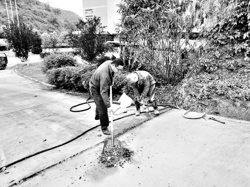 近日,因气候干燥,用水量急剧增加。为保障职工正常的生活用水,漳平煤业物业管理开发公司吾祠管理处组织人员加装一条生活用水管,让职工能用上放心水、安全水。图为职工正在安装水管。