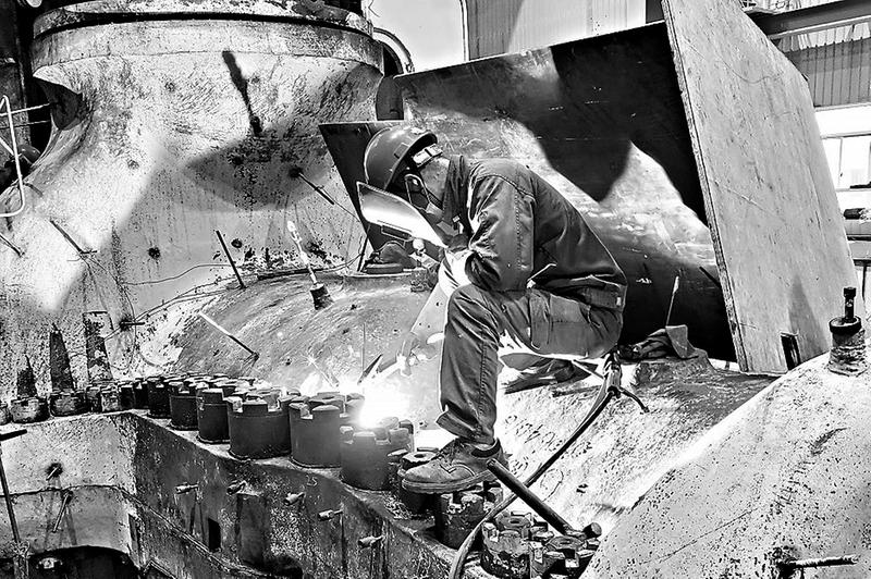“千淘万漉虽辛苦,吹尽狂沙始到金。”一次大检修需要很多繁杂的流程,该公司从去年立项之后就开始着手许多前期工作,文件包的修改、技术规范的审批、施工方案的编辑、备品备件的盘点采购……每一项都关系着检修质量的优劣,需要谨慎准备。 自4月1日检修工作开始以来,检修队伍遇到的第一个难题就是汽缸中分面的拆除。由于之前缸体中分面漏气,对漏气点处的螺帽和中分面进行了焊接处理,焊接容易破拆难,而且用的是特种焊条,角磨机根本切不动,甚至氧气乙炔焊也很难熔化。经过多次失败的尝试后,检修项目部紧急调配了1台气刨焊,高温碳棒和压缩空气的配合果然起到了奇效,1天就把焊缝割开。