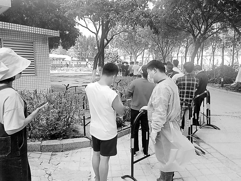 在厦门市开展全员核酸检测工作过程中,建材控股厦门混凝土公司党支部组织党员参加地方疫情防控志愿服务活动。图为近日,该公司党员在核酸检测现场维护秩序。