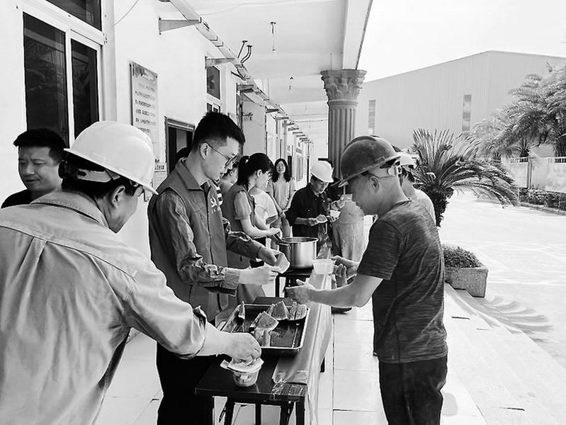 建材控股福清混凝土公司工会于6月2日开展“情系职工,夏送清凉”慰问活动,向一线职工亲手送上绿豆汤及西瓜等降温物品,并叮嘱大家要注意劳逸结合,在确保安全的前提下开展好各项工作。(薛琴琴摄)
