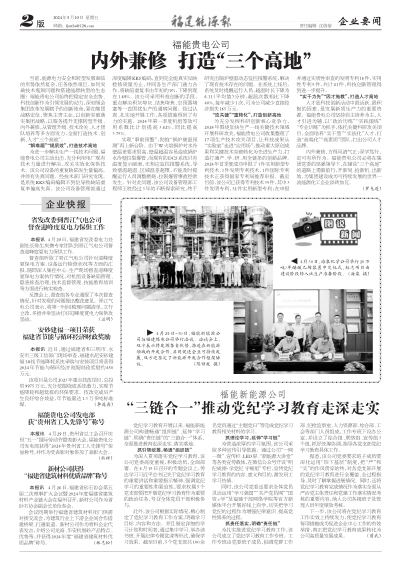 内外兼修,方得风清气正;深学笃行,定可有所作为。福能贵电公司必将在集团党委的坚强领导下,在建设“三个高地”的道路上勇毅前行,开新局、抢新机、出新效,为集团建设成为可持续发展的世界一流能源化工企业添砖加瓦。(罗克进)
