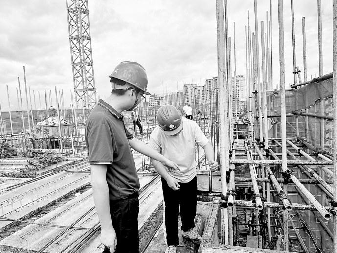 联美公司德化许厝第二工程项目部迅速响应,开展专项安全检查,备好备足防汛物资设备,“迎战”台风。(陈应斌 摄)