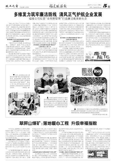 今年以来,福建煤电公司翠屏山煤矿坚持把“为职工办实事”作为工作出发点,沉下身子倾听井下矿工心声,推动一项项“暖心工程”落地见效,以务实举措解决矿区生活难题,让矿山浸润着民生温度,让生活更加和谐安逸。