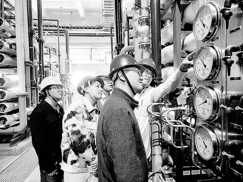 12月20日16:50,晋南热电公司锅炉补给水升级项目——二级反渗透系统整套72+24小时试运行顺利完成,标志着这一重要技改项目正式具备投运条件,为晋南热电水质提升与节能降耗增添一份保障。图为设备维护部热控专业工程师乔瑞鑫与施工单位在锅炉补给水改造项目现场对仪表安装情况进行检查。