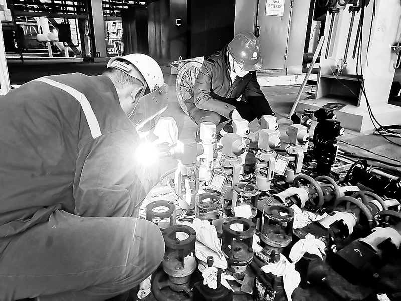 经过半月的紧张奋战,晋南热电公司2025年的最后一个等级检修1号锅炉C级检修进入收官阶段。截至2025年12月30日,给煤机、空预器、一二次风机、引风机、部烟道排尘管更换、炉引风机出口膨胀节更换等项目全部完成,开始恢复保温、调试、清理现场。图为检修人员在焊接汽水系统阀门。