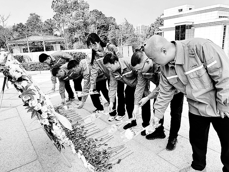 近日,建材控股福清公司党支部组织全体党员干部前往福州文林山革命烈士陵园开展“缅怀革命先烈,赓续红色血脉”主题党日活动,以庄重仪式致敬英烈,以实地研学汲取力量。 (薛琴琴 摄)