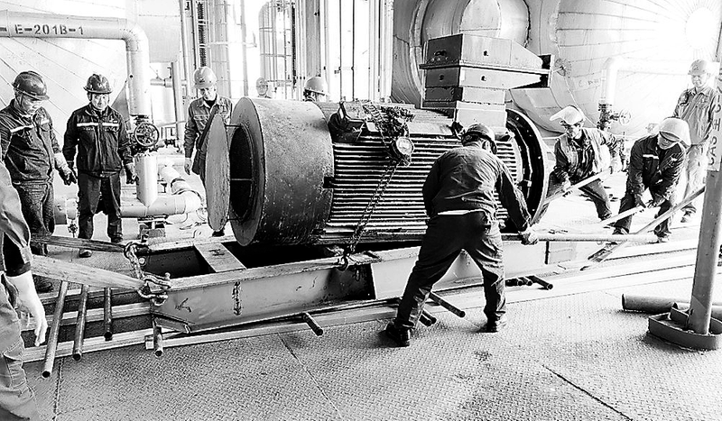 本次抢修最大难点在于设备转运。故障电机位于6楼且无行车,7.6吨新电机需人工转运80米,途经多处转角与设备密集区,作业难度大、风险高。抢修团队组建牵引、导向、防护专项小组,18名人员协同发力、精准配合,仅用20分钟便将电机平稳送至吊点。安装阶段,各专业严格执行“专人负责、专人复核”,高效完成尺寸复核、接线检测与校准找正。至当日15时,历经12小时连续奋战,顺利完成电机更换。